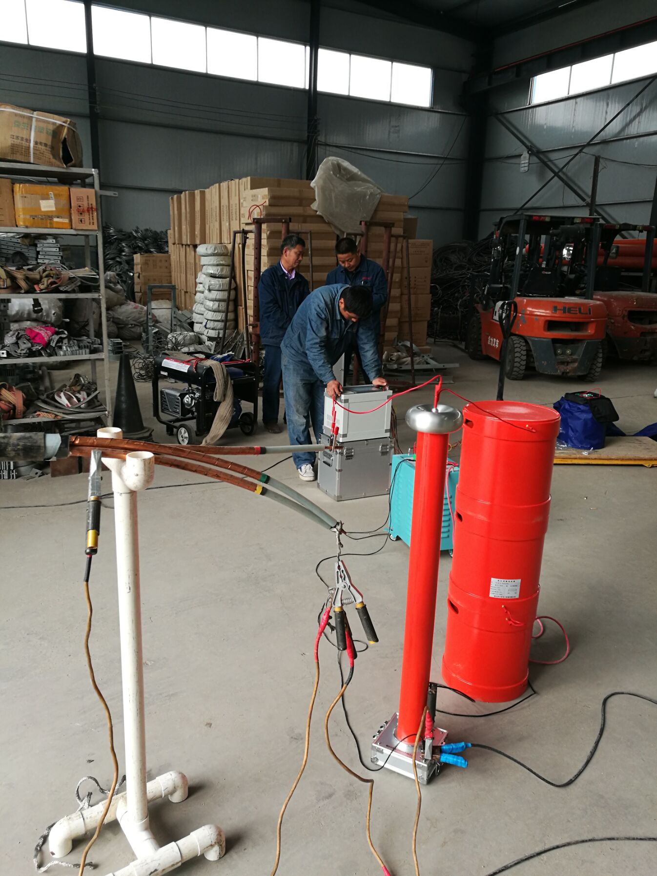 接下來李工對客戶提出疑問的地方,現(xiàn)場給予細心,準確的解答。隨后,又與客戶一起到現(xiàn)場對被試品進行了試驗,指導(dǎo)客戶完全熟悉和掌握了儀器操作、試驗流程。