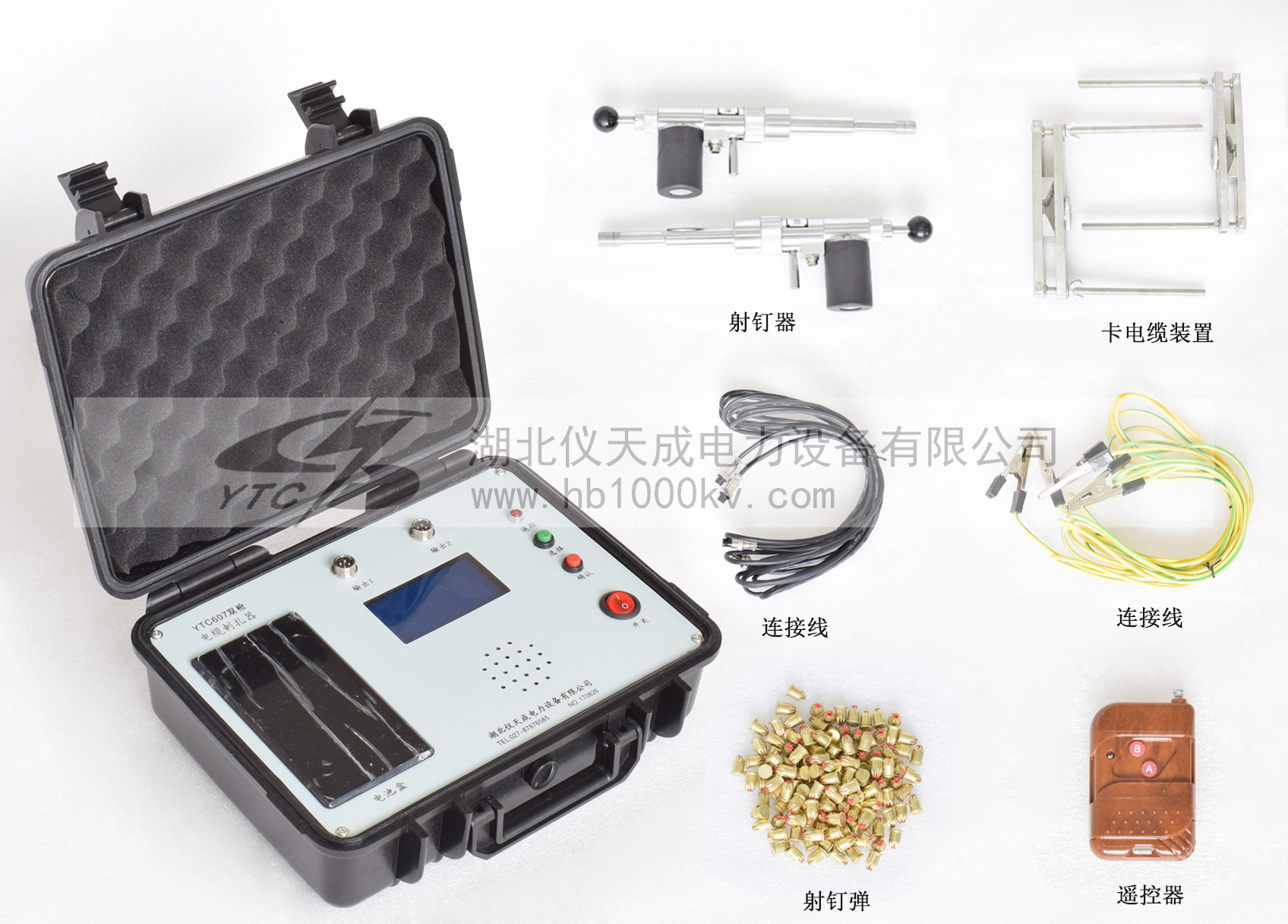 電纜刺扎器主要由控制器,遙控器,扎傷槍體組成,把控制器和槍體連接好后,擰開槍體按鈕將扎傷器分成為前后兩部分。將扎釘裝入器管內,用通條送到管底。將被扎電纜與相鄰電纜用相應隔離帶隔離,以防止誤扎相鄰電纜。將扎傷器前半部分用夾子卡在電纜上,擰緊螺母。然后將子彈裝入彈膛內,將扎傷器后半部分裝上,并擰緊螺母。手指扣住拉環拉出,聽到扳機掛上的聲響,并確認松手后,拉環不再向前動。此時扎傷器的準備工作完成,這個時候可在遙控器、控制器的控制下進行扎傷電纜動作過程。 電纜刺扎器是用來鋪陳好的電纜進行遷移和故障維修檢測的儀器,是一個電力工作者需要掌握的技能,需要電力工作者熟系操作,才能在工作中更加安全快捷。