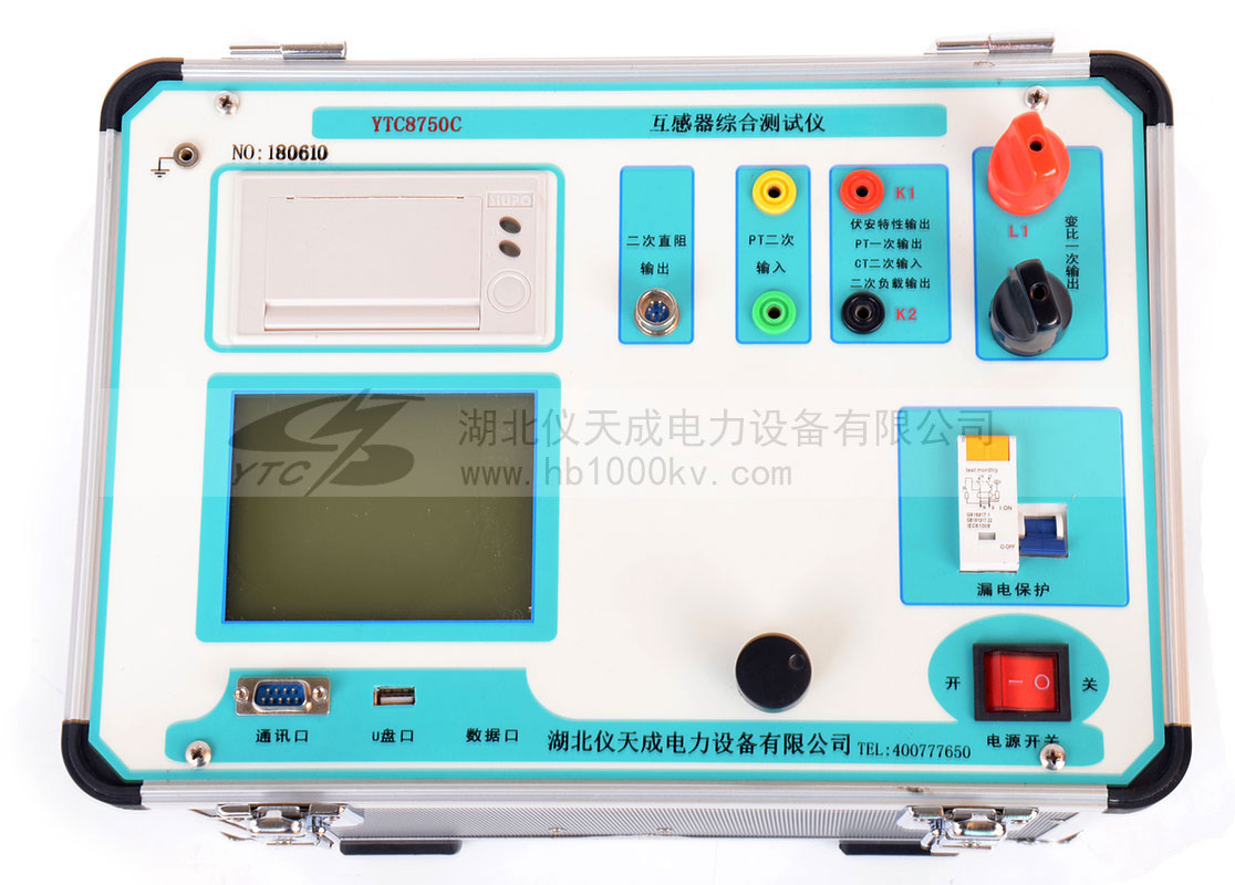 YTC8750C互感器綜合測試儀實驗時僅需設定測試電壓/電流值,設備便能夠自動升壓/升流,并將互感器的伏安特性曲線或變比、極性等實驗結果快速顯示出來,支持數據保存和現場打印,不但省去手動調壓、人工記錄、描曲線等繁瑣勞動,還能通過USB接口將測試數據上傳到電腦進行編輯保存或打印。