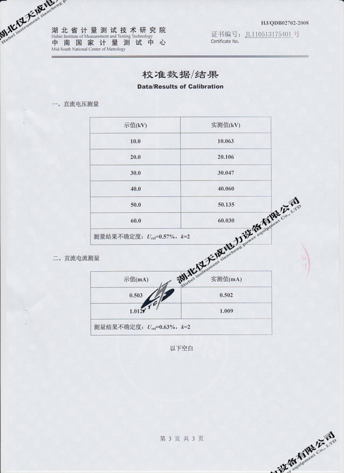 轉(zhuǎn)載:"YTCZG-60kV/2mA直流高壓發(fā)生器的資質(zhì)證書" 請注明來源于儀天成電力。 更多技術(shù)問題請致電儀天成電力客戶服務(wù):027-87876585,技術(shù)部專線:027-87876585,在線客服:719388481